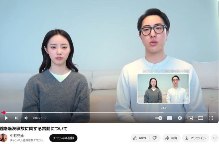 | 「ネタとして消費することに疑問を抱けない」幼稚さの正体。人気YouTuber中町兄妹、道路陥没事故めぐる発言が大炎上 …「中町兄妹」道路陥没事故めぐる発言が大炎上 兄妹のぶっちゃけトークで人気のYouTuber『中町兄妹』が大炎上しています。埼玉県八潮市の道路陥没によ… (出典:) |